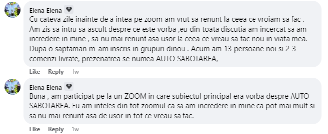 Mărturiile pe care le găsești aici sunt sincere, de la oameni care au participat la evenimente sau cursuri și au obținut transformări reale.